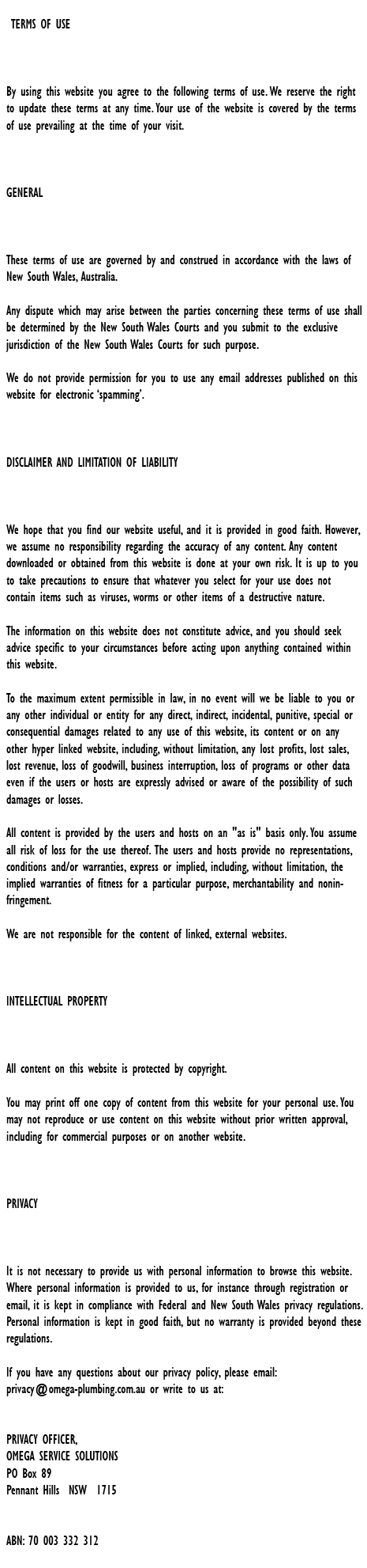 For fast, same day service for all your plumbing needs in Terrey Hills, you'll be delighted with the great service, up-front pricing and rapid response you receive from Omega Plumbing.